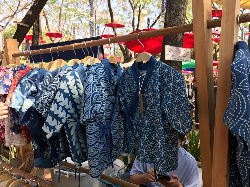 Kiểu nghe đến chợ ở VN, người ta sẽ nghĩ đến những sạp hàng ẩm ướt, không khí ồn ã, đủ loại mùi tươi sống và gia vị. Còn chợ Jing Jai là một bữa tiệc đủ 5 giác quan: tiếng nhạc sống tươi vui trong không khí chợ rộn rã; mỗi sạp hàng lại có một mùi hương riêng: mùi gỗ từ những món đồ trang trí, mùi hoa quả tươi, hương thơm của miếng xà phòng, mùi nắng,…; nắng vàng nhuộm lên tất thảy một màu tươi mới, màu xanh dương tuyệt đẹp của những bộ quần áo (ở đây họ yêu màu xanh dương lắm hay sao mà đi đâu chúng tôi cũng thấy quần áo màu này), màu nâu sáng của gỗ, màu vải đũi,… Mọi người mua sắm trong giai điệu vui tai của ban nhạc đang hát giữa sân.