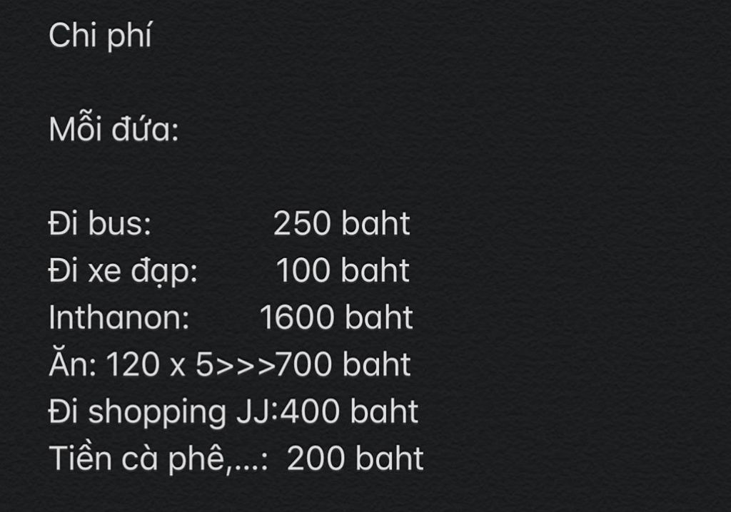 Trước khi bắt đầu chuyến đi, vì sợ hãi với khả năng tính toán tiền bạc (sợ không đủ tiền leo núi) và số phận phải đóng họ ở 7 Eleven cùng mì tôm, chúng tôi đã lên sẵn một budget như thế này để thêm lạc quan vào chiếc ví lép :v