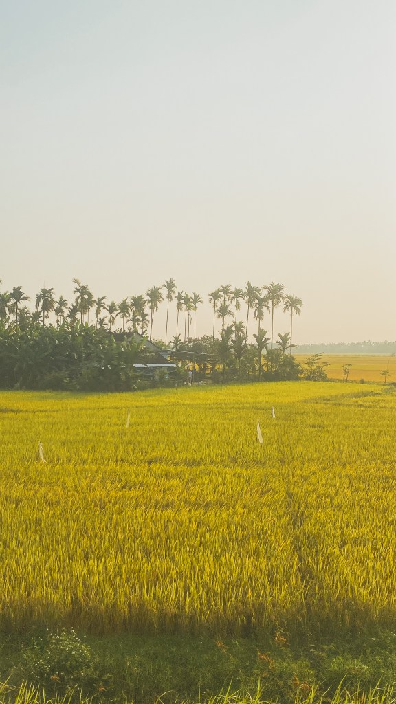 Tàu hoả đi qua những cánh đồng lúa chín vàng ở Quảng Ngãi, dưới ánh nắng bình minh siêu siêu đẹp mà mình nghĩ không có một từ ngữ nào có thể miêu tả cảnh bình yên lúc đó. Hai người nằm giường trên đều xuống ở ga Quảng Ngãi. Trước khi xuống tàu, bác nằm giường trên mình có chào hỏi sơ sơ với mình. Bác có kể quê bác ở Quảng Ngãi, nhưng bác chuyển vào ở Khánh Hoà gần 40 năm rồi. Bác bảo dù Quảng Ngãi là nơi sinh ra nhưng bác gắn bó và yêu cuộc sống ở Khánh Hoà hơn, cảm giác như Khánh Hoà mới là vùng đất thuộc về mình.