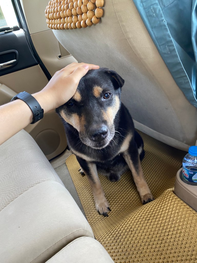 Đến những phút cuối cùng trước khi lên ô tô, Lucky vẫn rất hồn nhiên đi vệ sinh ở ngoài hồ, về ăn thêm mấy miếng thịt miếng bánh. Nhưng khi qua đường để lên ô tô, nó đã giằng tuột xích và một mực muốn đi về nhà. Mình nghĩ nó hiểu rồi, đây cũng không phải lần đầu nhà mình cho nó đi ở nhà người khác. Chỉ khác là, chuyến đi lần này của Key chỉ có vé một chiều.