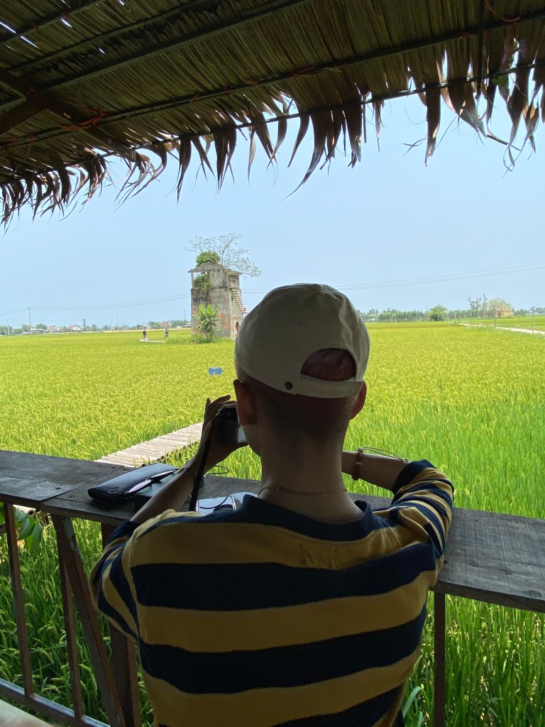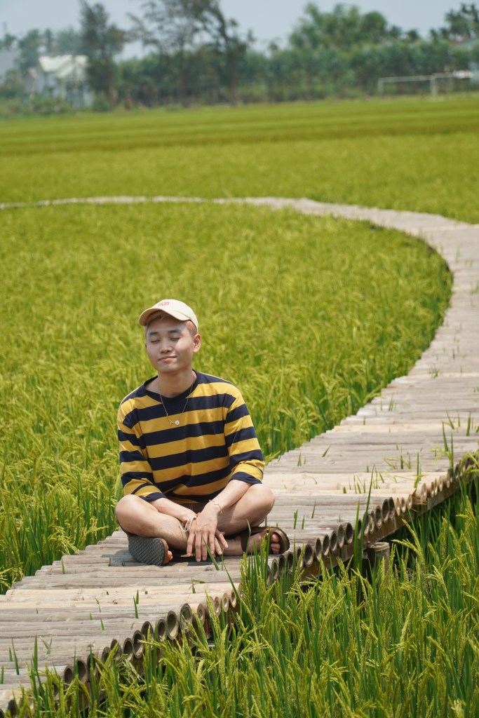 Điểm đến Nông trại Lò gạch cũ, một điểm rất nổi trên Instagram từ lâu. Ban đầu tụi mình tới đây vì cái lò gạch, nhưng ngồi ở quán một lúc, thì mình phát hiện chính cái cánh đồng lúa và nhà chòi cà phê này mới là thứ quý giá nhất.