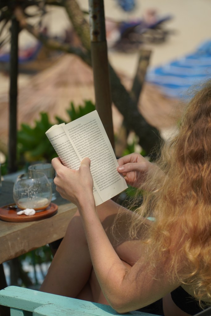 Người thì đọc sách, người thì ngồi trên bãi cát nhìn ra biển, người đi bộ dọc bãi dưới nắng, người nằm yên dưới tán ô. Ai làm việc người ấy và trông ai cũng thong thả, hạnh phúc với cuộc sống chậm chạp.