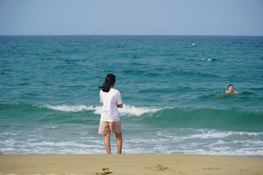 Khi những đợt sóng tràn đến qua cẳng chân và rồi khi sóng rút qua từng ngón chân về biển, những cảm xúc lo âu, mơ hồ, vụn vỡ như được rửa sạch và tiêu biến. Tác động vật lý liên tục của sóng biển và ánh mặt trời trên cao khiến chân tụi mình ửng đỏ nhưng ai quan tâm chứ khi bản thân được sống trong từng khoảnh khắc của hiện tại.