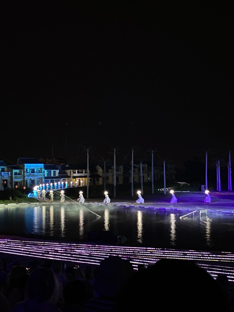 Tới lúc xem mini show lẫn show chính xong thì mình công nhận là nó đẹp vãiiii luôn. Cách họ trình diễn, từng động tác nhấc chân nhấc tay, tay cầm đèn, tay hất tà áo dài, cách âm thanh ánh sáng và sân khấu làm nổi bật lên hình ảnh con người đang kể lại câu chuyện lịch sử về Hội An, mé nó tuyệt vời sởn cả gai ốc. Lần đầu tiên trong đời mình thấy tà áo dài đẹp như thơ ca miêu tả.