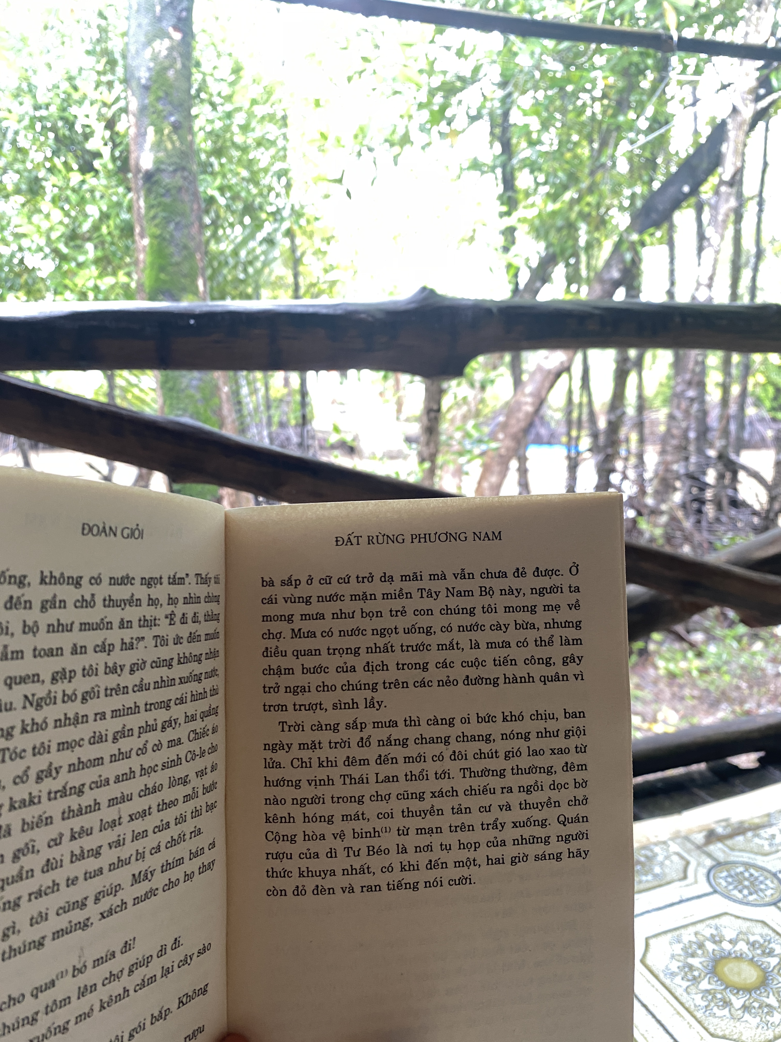 Mình có mang theo cuốn Đất rừng Phương Nam để đọc lại, rất hợp vibe luôn, đặc biệt là trong tiết trời mưa rả rích rả rích. Ngoài đọc sách, mình cũng ngồi suy nghĩ rất nhiều thứ.