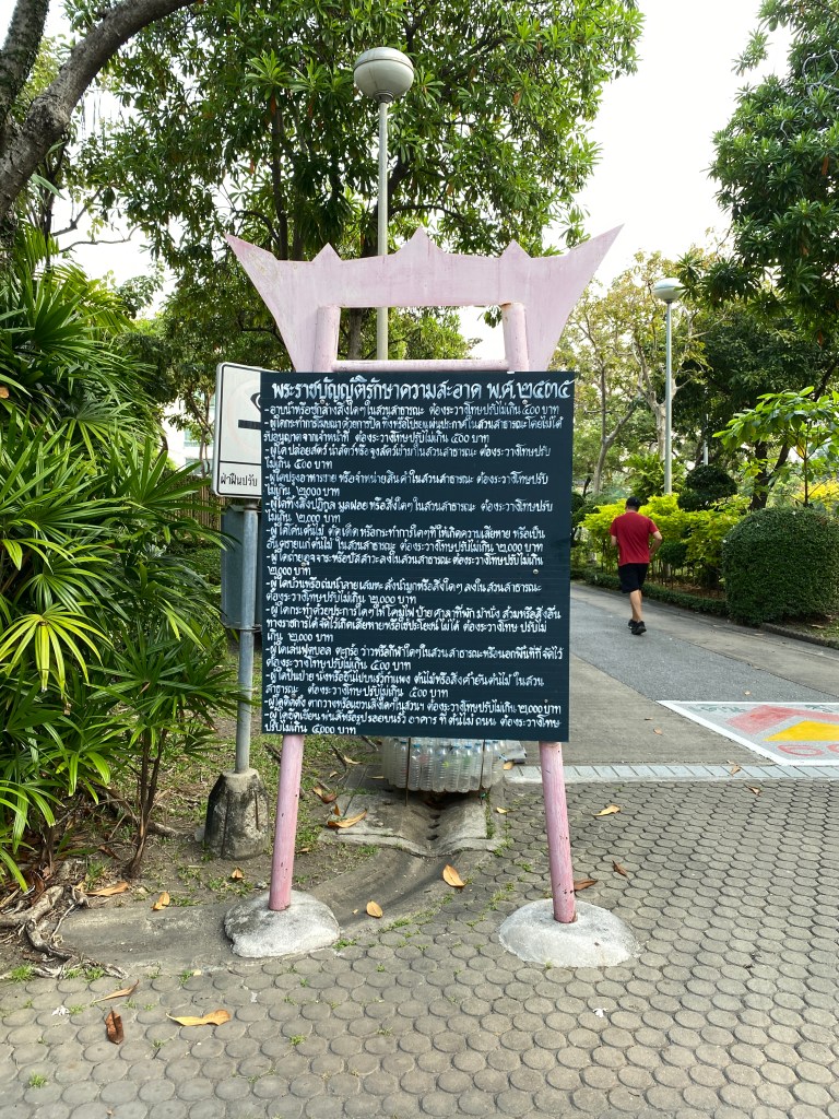 Khách sạn mình ở là trong một cái Soi (ngõ/ngách) ở cạnh một cái công viên rất đẹp. Vậy nên cứ sáng ngủ dậy và tối đi chơi về là bố mẹ mình sẽ đi bộ, tập thể dục ở công viên bên cạnh. Cho dù sinh hoạt bị thay đổi vì đi du lịch nhưng bố mẹ mình vẫn giữ những thói quen cố định để chăm sóc sức khoẻ và ổn định tinh thần. Và đó là điều mình rất cần học hỏi và áp dụng trong cuộc sống hàng ngày.