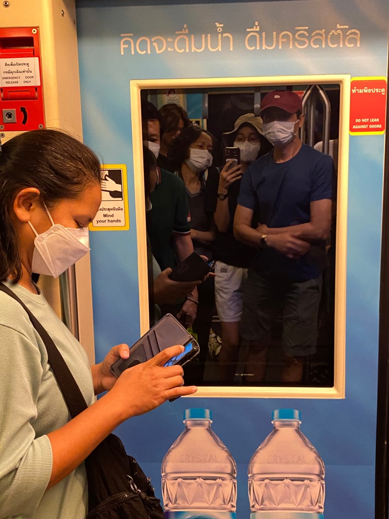 Ở Thái Lan, 60% gia đình mình sử dụng phương tiện công cộng là tàu điện trên cao, tàu điện ngầm, xe buýt và 38% đi bộ. Cảm giác đi tàu điện ở Thái rất chi là ngộ nghĩnh, buồn cười.