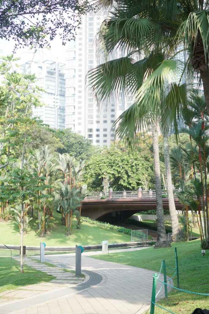 Trên đường vào KLCC Park, khi đang vừa đi vừa nghểnh cổ ngắm trời ngắm nhà cao tầng, mình được một ông lớn tuổi nhờ chụp ảnh hộ với tháp Petronas. Ông brief mình rất kỹ luôn, là muốn người phải ở trung tâm, nhưng vẫn lấy được cái tháp.
