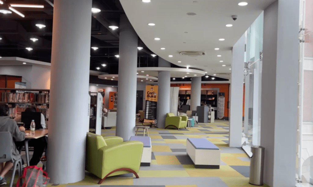Lần đầu đi thư viện ở nước ngoài. Thư viện rất đẹp và không yêu cầu thẻ thành viên để vào. Thư viện ở ngay đối diện quảng trường Merdeka.