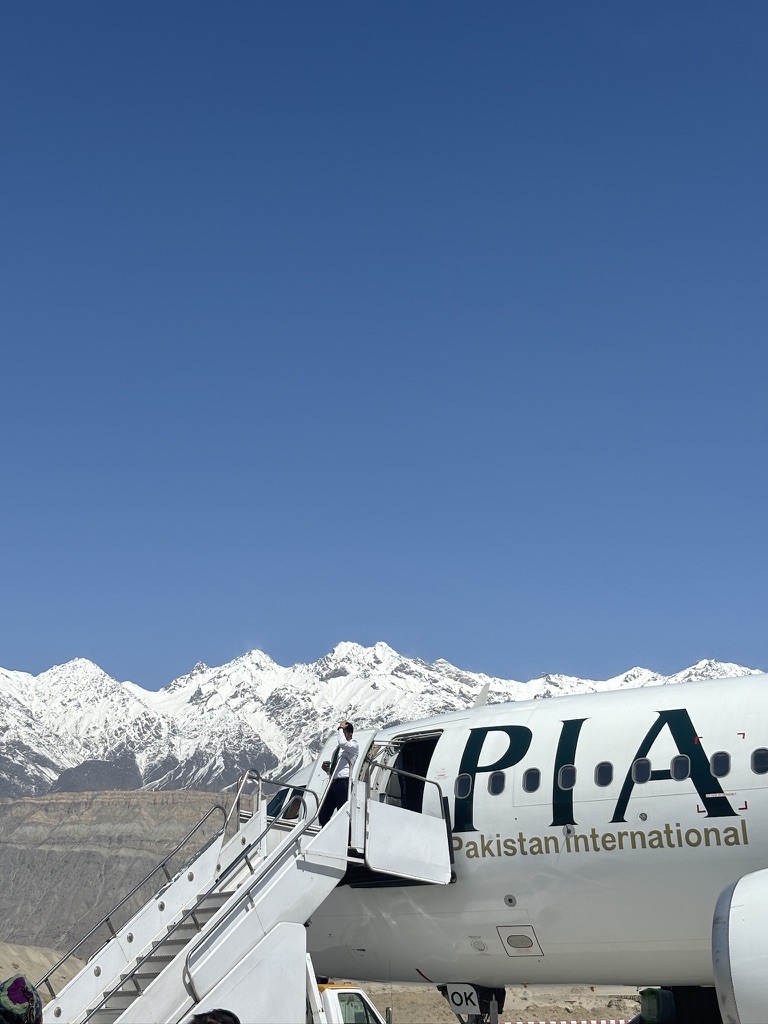 Máy bay hạ cánh ở sân bay Skardu, và mình thề, chắc chắn đây là một trong những sân bay đẹp nhất thế giới. Sân bay nhỏ xíu, chỉ có chỗ đậu tối đa 2 máy bay. Lần đầu tiên mình cảm thấy đi xe buýt từ máy bay vào trong lại 100 điểm, bình thường mình chỉ thích đi ống cho mát mẻ.