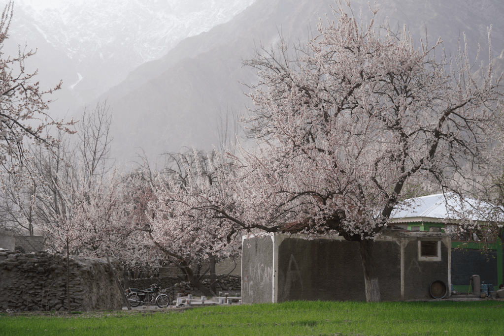Trước khi mình đi một tuần, tuyết vẫn rơi dày ở Skardu lẫn Hunza. Nhưng khi mình đến, những nụ hoa mập mạp đã chi chít trên những cành cây khô khốc.